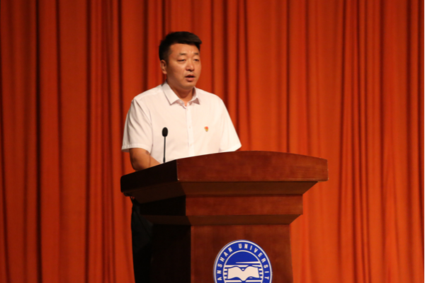 At the conference,Prof. Xie Ping from the School of Electrical Engineering, winner of “Hebei Outstanding Teacher”, speaks on behalf of the eminent teachers;Dong Guojiang, Party Secretary of the School of Mechanical Engineering, speaks on behalf of the eminent collectives;Zhou Xiangfeng, teacher from the School of Materials Science and Engineering, speaks on behalf on the new employees;Wang Shaowei, student from the School of Humanities and Law, speaks on behalf of the students.