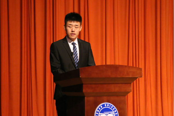 Wang Shaowei, student from theSchool of Humanities and Law, speaks on behalf of the students.
