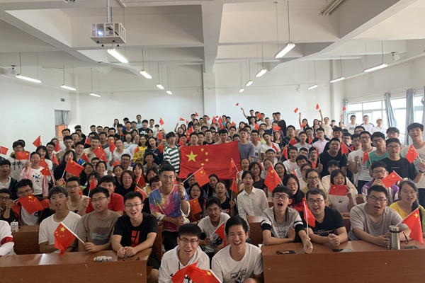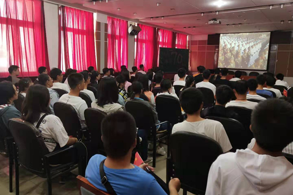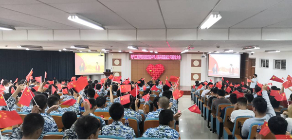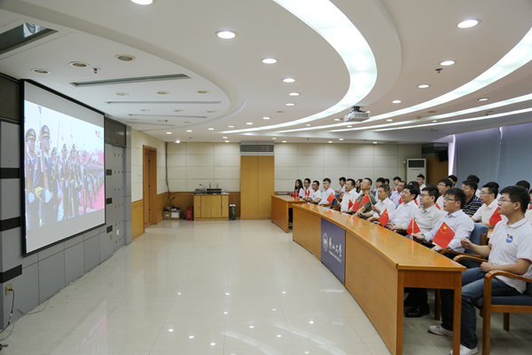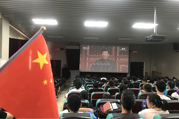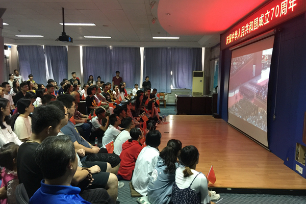 Teachers and students of the School of Mechanical Engineering watch the National Day live broadcast.
