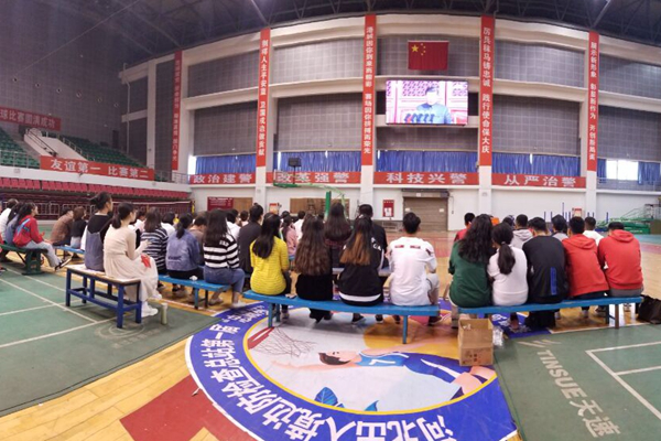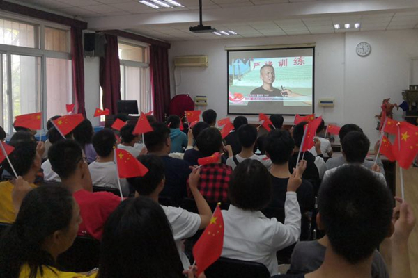 Teachers and students of theSchool of Physical Education and the School of Foreign Studieswatch thelivebroadcast.