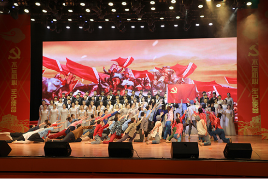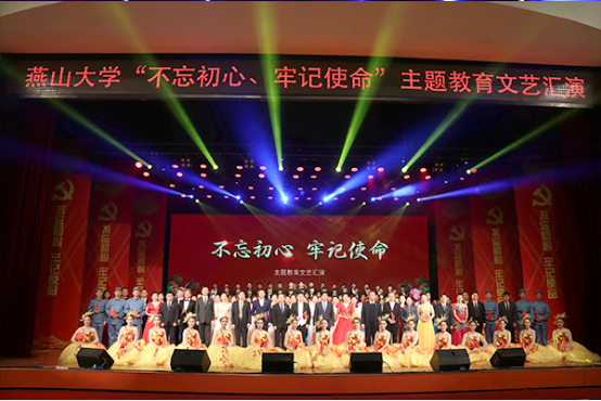 The performance was divided into threesessions. The first chapter focused on the establishment of the initial mission and a new era for the Chinese nation. The songs reviewed the development and the growth of the Party from itsfounding in years of revolutionary struggle. The second chapter concentrated on how we held the initial mission firmly in mind and made miraculous development. The performances showed the glorious course of China from the revolution to the reform and opening up, and to the new era of socialist construction. The third chapter reflected that we should uphold the original mission and thus realize the Chinese Dream of the great rejuvenation. The songs expressed the longing for abetter life of YSU teachers and students and the love for the motherland. Love, sing the great achievements of the motherland’s construction since the 18thNational Congress of CPC, showing our determination to realize the great rejuvenation of the Chinese nation.