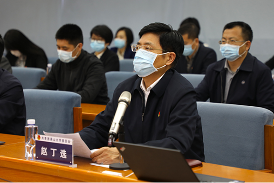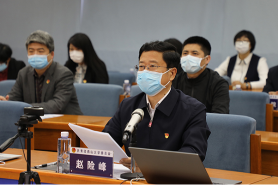 Xue Chuanjia, Secretary of the YSU Committee of the Communist Youth League, reported how students of our school participated in the voluntary service to epidemicprevention and control.YSU organizations of the Communist Youth Leagueat all levels fully implemented the arrangements of the superior ones and YSU Party Committee, leading the members to play a role as the main force in the fight against the novel coronavirus outbreak. More than 800 volunteers participated in the services at their hometowns. 309 students actively responded to the call for working with medical staff. The "Foreign Language Emergency Volunteer Service Team" of 15 people wasformed overnight, which was ready to support airports and customs at any time. All these actionswere the inheritance and development of the May Fourth spirit.