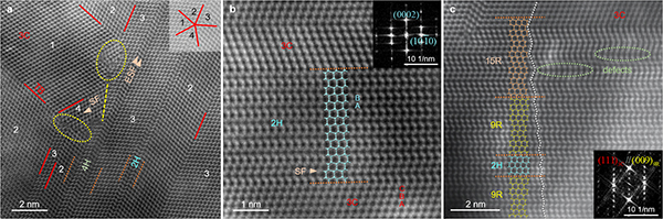 In the Figures above, 3C represents cubic diamond; 2H, 4H, 9R and 15R respectively represent 4 different polytypes of cubic diamond.