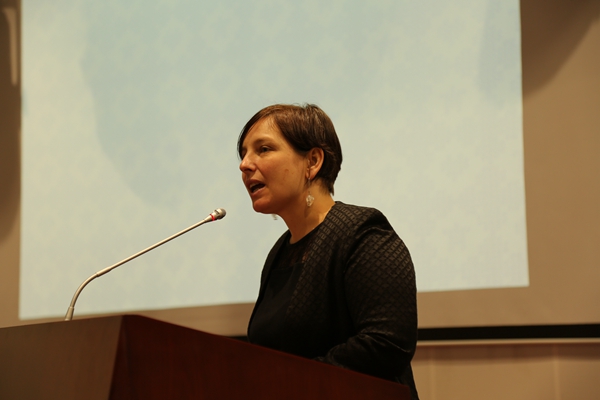 Dr. Niya Song, Counselor for Hungarian Education Embassy in China, is giving the key note speech.