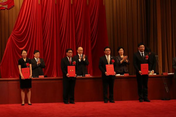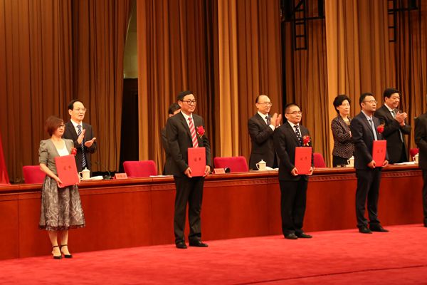 Hebei Party Secretary Kezhi Zhao is presenting awards to Prof. Yongjun Tian (first from the left).