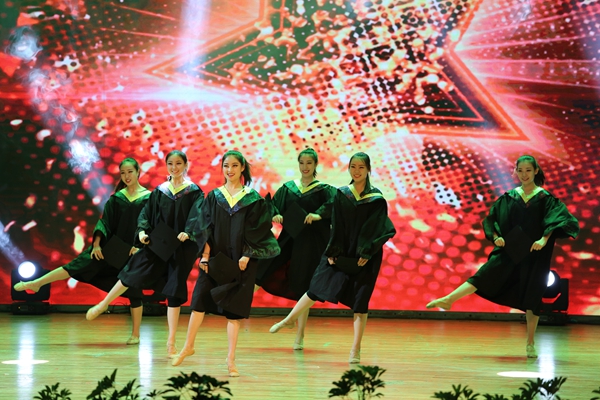 The dance “the Graduation Season” opened the prelude of the gala with its vibrant melody. President Hongmin Liu addressed the gala: he recalled YSU achievements over the previous year, sent best wishes to graduates, and encourage them to overcome difficulties with courage and wisdom and to keep thinking and learning all the time while facing new challenges and embracing new life. Divided into three chapters---beautiful memory, colorful campus, and dream chasing, the Gala themes love for classmates, teachers, and the country, demonstrating humanistic emotions of love, gratitude, and advance. In the first Chapter, the singers illustrated their unwillingness to leave the campus and recalled unforgettable memories of four-year life at YSU. The recitation “My Heart Will Always Be Here”reminded the audience of precious moments on campus, and the background video clips narrated the stories from a freshman to a senior. Featuring passionate moves and melody, the dance “My Brothers” showed deep affection among college friends. The guitar play “When we were younger” inspired students to go for their promising future. The cross talk “Love at YSU” brought incessant laughs to the audience and students were touched by the actor’s line “I don’t expect that we could gather again, but that we wouldn’t forget each of us”.