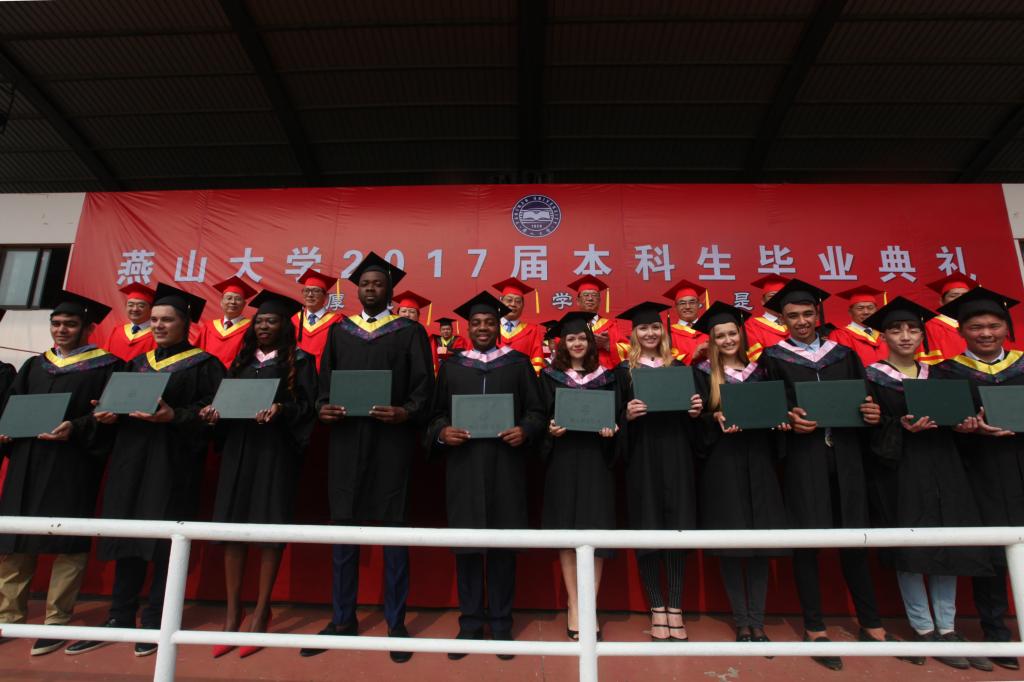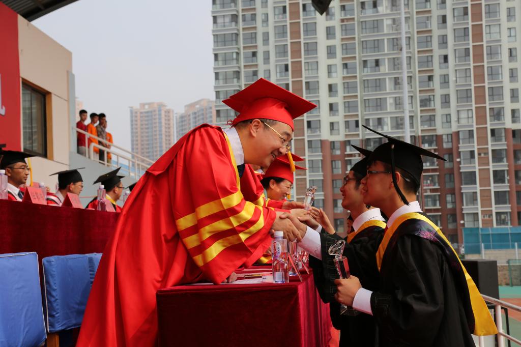 On behalf of YSU, President Liu gave the graduates a last lesson "the Era of Profound Change: Exploration and Persistence". He congratulated all the graduates and their families, and thanked YSU faculty for their hard work. He hoped that students had a correct understanding of the significance of university, which is, helping students to form conscience and justice; guiding students to pursue truth and light; training students in systematic study, independent thinking, and innovation; and cultivating their character, courage, and confidence. Reviewing the 4-year achievements of class of 2017, Liu exhorted these graduates to have a correct understanding of the times: rapid changing, profound reform and creativity can change the destiny. Everyone, equipped with learning and thinking, creativity and executive power, would strive to be a hero of the society. No matter how the times changes, graduate should always adhere to patriotism, dedication, integrity, and kindness. This year YSU had ordered unique graduation badges by name for every graduate, representing the uniqueness of every graduate. YSU would always be proud of her children. "Dear alumni, goodbye" at the end of President Liu’s address conveyed YSU’s high expectations of the graduates, and ignited the enthusiasm of all graduates.
