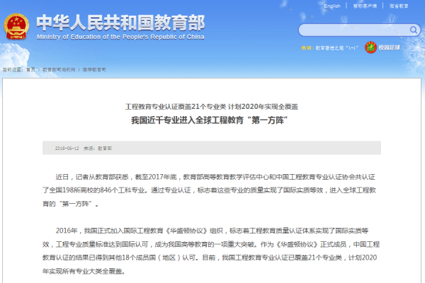 [News from the news center]Recently, the MOE has announced a list of universities, 846 engineering majors in 198 Chinese universities and colleges have passed professional certificationaccording to the statisticsbythe end of 2017. These majors were honored top majors of global engineering education. 9 majors of our university wereselected, which ranked 25th in national universities.