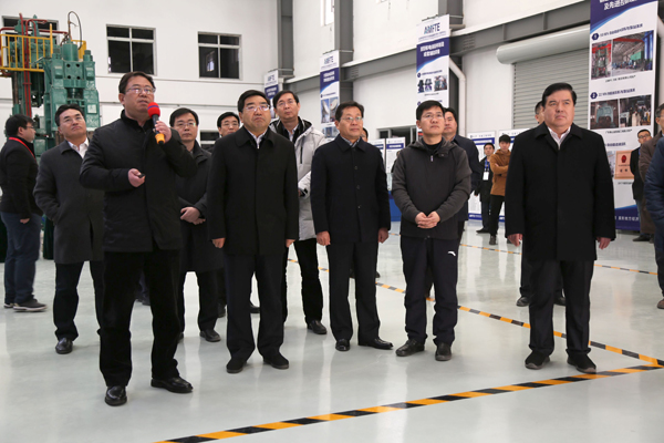 Accompanied by Meng Xiangwei (Qinhuangdao Municipal Party Secretary), Zhang Ruishu (mayor of Qinhuangdao), Liu Hongmin (YSU president), Kong xiangdong (YSU vice president) and Zhao Dingxuan (YSU vice president), Lian Weiliang and his delegation paid field research to National and Local Joint Engineering Research Center for Advanced Manufacture Forming Technology and Equipment, National Engineering Research Center for Equipment and Technology of Cold Strip Rolling, and attended the demonstration of inertial control suspension technology.