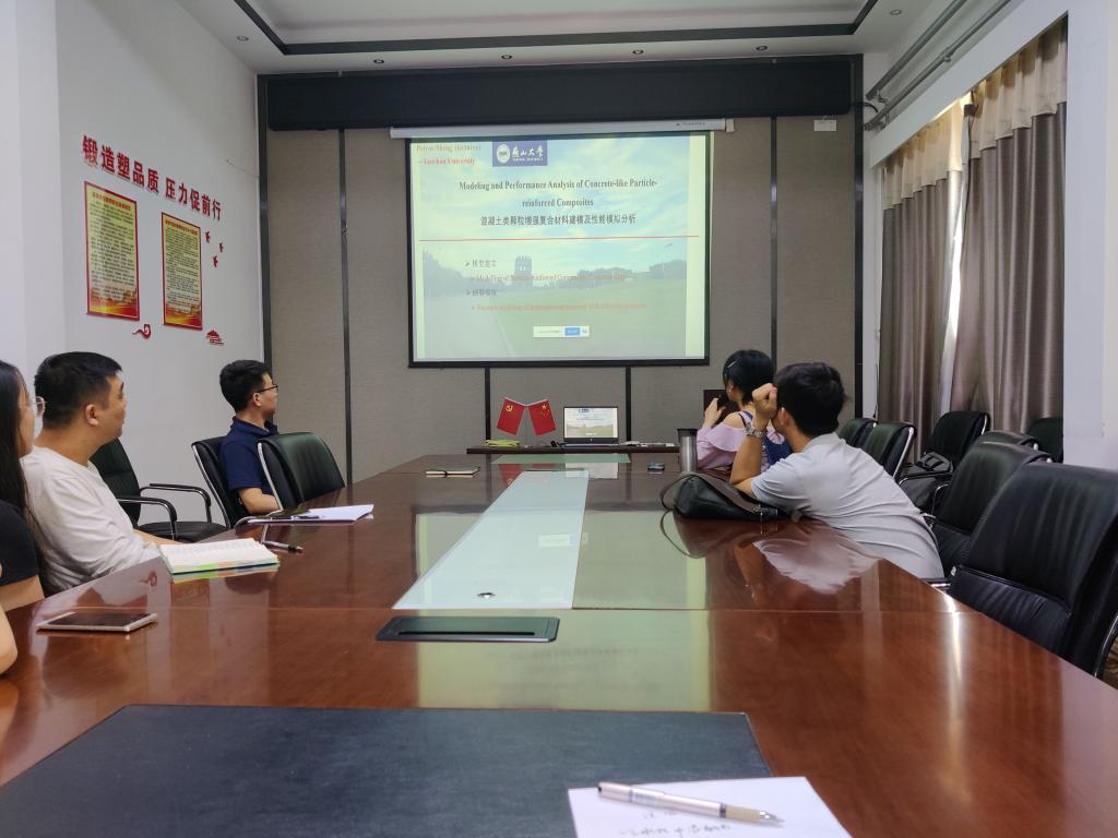 Sheng Peiyao and graduate student Wei Sai made academic reports entitled Modeling and Performance Analysis of Concrete-Like Particle-Reinforced Composites and Structural Modeling and Simulation of Particle-Reinforced Metal Matrix Composites, respectively, to introduce the relevant report of the research on particle-reinforced composites and structure modeling. The report mainly includes “how to generate complex shape particle model, how to use establish a high-density composite material model by using “drop method”, how to conduct interface modeling using the particle surface expansion method, how to insert a cohesive unit into the material and perform fracture simulation using a self-written program”.