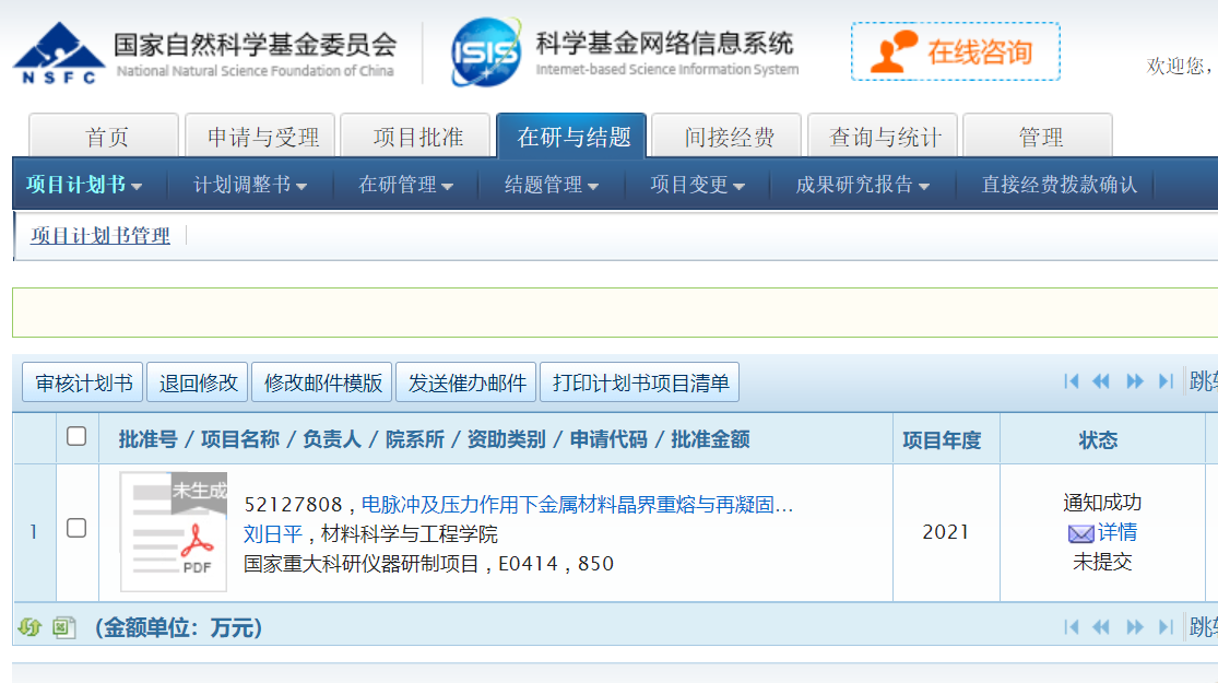 [News Center] The major national research instrument development project "Grain Boundary Remelting and Re-solidification Device of Metallic Materials under Electric Pulse and Pressure" declared by Professor Liu Riping of Yanshan University (YSU) was recently funded by the National Natural Science Foundation of China (NSFC) with a direct fund of CNY 8.5 million. This is the first time that YSU has been funded to conduct NSFC’s major research instrument development project, and it is also YSU’s another major historical breakthrough in research.