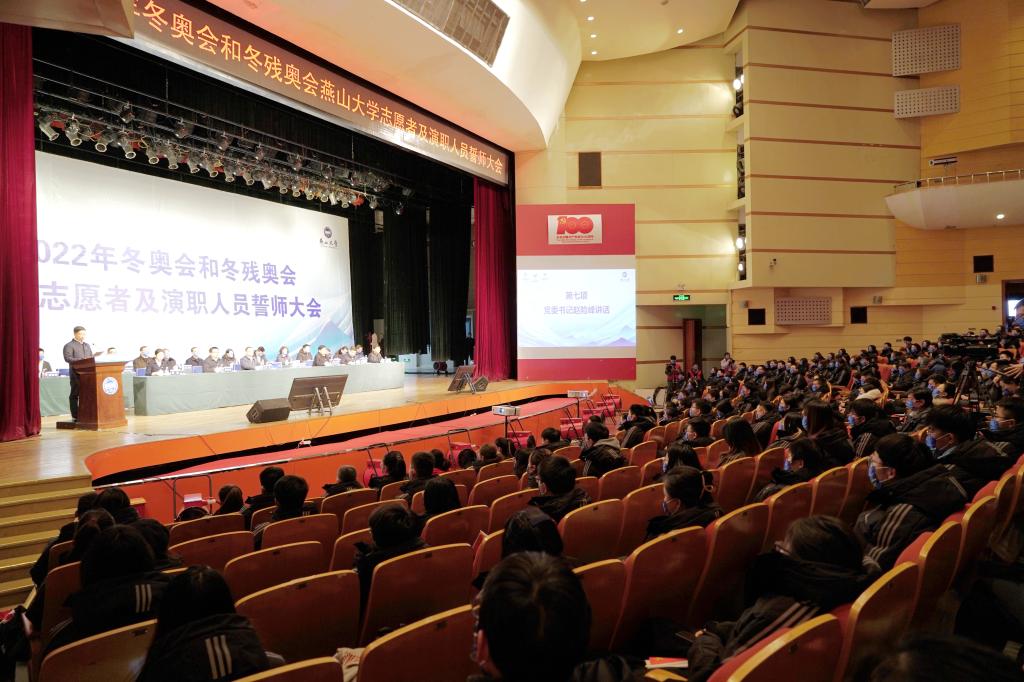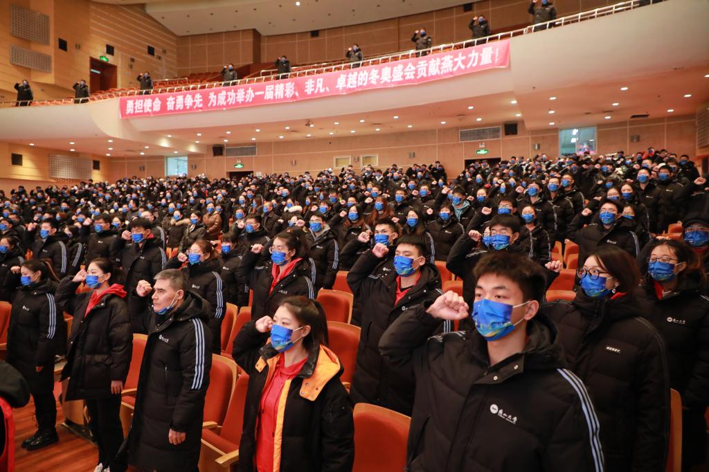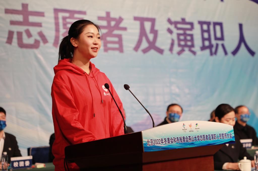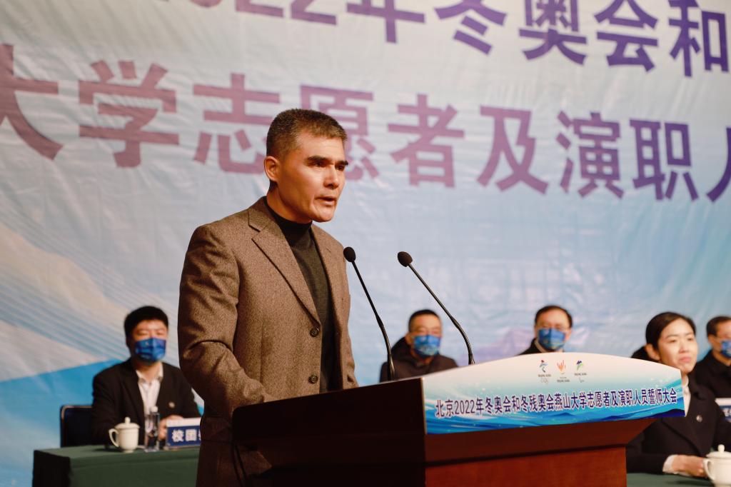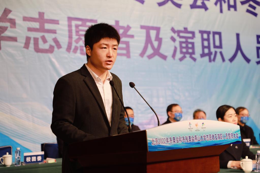 Go to the Winter Olympics together with the passion ignited by the ice and snow. At the mobilization meeting, Sun Xishan, a general volunteer for the Winter Olympics and a professional teacher in the School of Civil Engineering and Mechanics, and Liu Jiaxin, an actor at the closing ceremony of the Winter Olympics and a student from the School of Arts and Design, made speeches as representatives of the Winter Olympics staff. They expressed that they will work hard in their respective fields, promote YSU’s cultural character, bravely shoulder the glorious mission entrusted by the times, and contribute to the hosting of a “simple, safe and wonderful” Winter Olympic Games.
