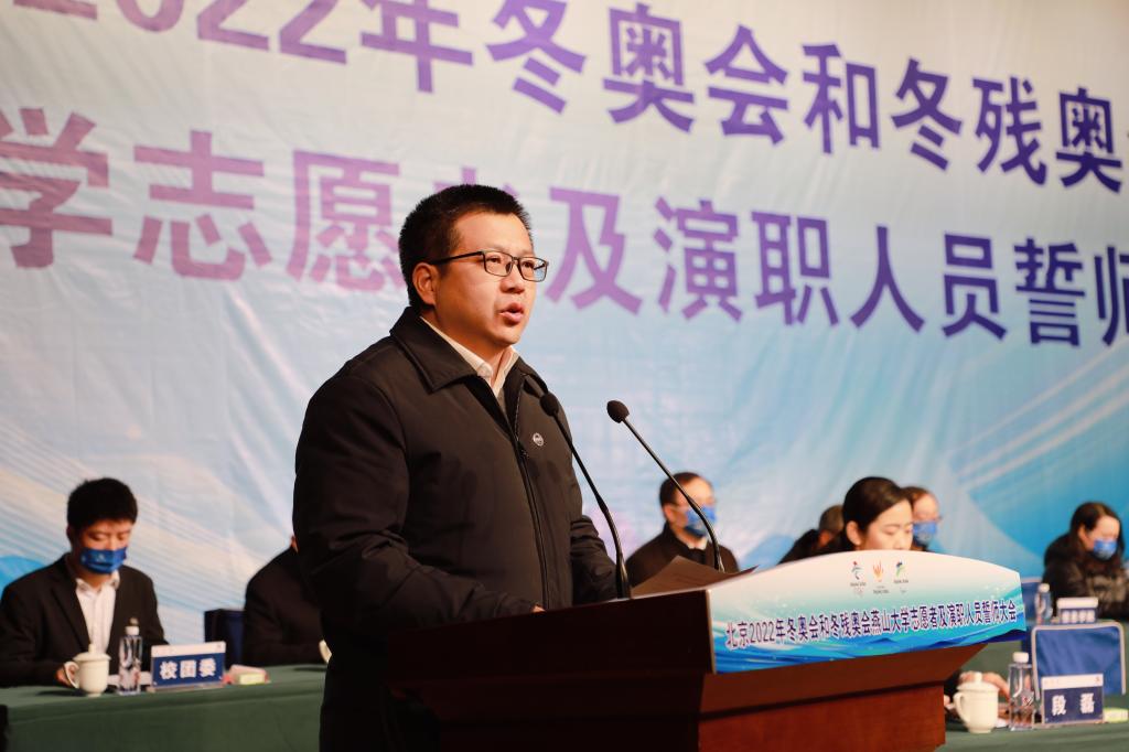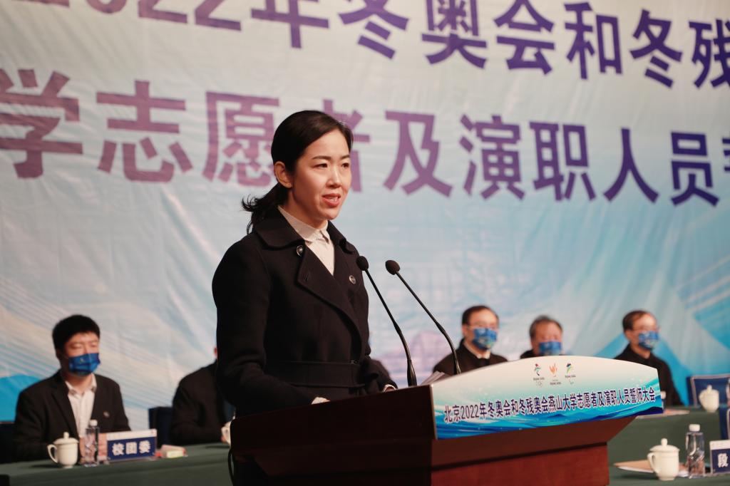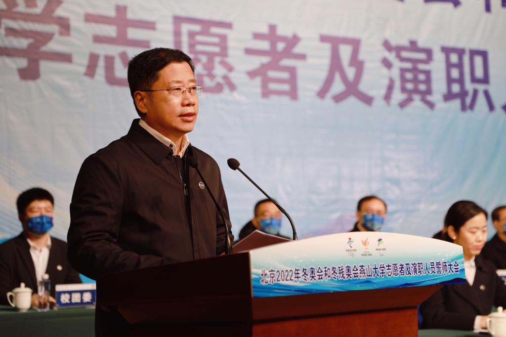 Zhao Xianfeng made a mobilization speech at the meeting. On behalf of the Party Committee of YSU, he expressed his high respect and best wishes to all teachers and students who are about to embark on the journey of serving the Winter Olympics, with the expectations and trust. Zhao Xianfeng said that the task of YSU to serve the Winter Olympics is a historical opportunity given by the great era, is a glorious mission delivered by the Party and the people, and is a grand stage to showcase the YSU youth, Hebei youth and even Chinese youth. He had four hopes to the teachers and students serving the Winter Olympics: (1) to cherish the honor and fulfill the mission. It is necessary to contribute to the Winter Olympics with a strong sense of political responsibility and a highly responsible attitude, and live up to the ardent expectations of the Party and the people; (2) to be dedicated and enthusiastic in services. It is necessary to overcome difficulties with fearless courage and firm conviction, complete various tasks with enthusiasm and meticulousness, and contribute to the Winter Olympics with practical actions; (3) to improve skills and show demeanor. It is necessary to vigorously improve the professional skills and comprehensive quality of serving the Winter Olympics, fully display the good image of the Chinese people's civility, politeness, self-reliance and self-confidence, and make the serves of YSU staff in the Winter Olympics a good memory for guests and friends from all over the world; and (4) to earnestly perform responsibilities and ensure safety. It is necessary to abide by relevant rules and regulations, enhance self-discipline awareness, consciously obey the dispatch, and at the same time improve political standing and safety awareness, and complete the glorious task of serving the Winter Olympics with high quality and high level on the premise of safety and health.