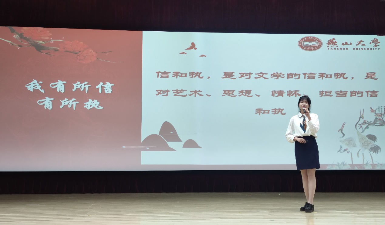 After reviewing and recommending by each school, and checking and preliminary selection by the Office of Student Affairs, a total of 8 undergraduate candidates and 9 postgraduate candidates participated in the selection. The candidates told the judges and the audience their dreams and struggle stories on the site, and interpreted that “struggle is the most beautiful background of youth” with their own experience. Among them, one student has successfully developed China’s first hydrogen battery, which won the National Gold Award in the “Internet+” Competition, the first gold medal in the competition in Hebei Province’s history; one student has published 24 SCI papers and applied 8 invention patents (including authorized patents), which breaks the Japanese monopoly, and helps to build China’s first new hydrogen storage material production line with independent intellectual property rights; one student has obtained score A+ or A in 50 courses, and dedicated his/her talents and enthusiasm to volunteer service; some students uphold humanistic feelings and turn beliefs into power to actively help the poor peasants and devote to rural revitalization... They use their actions to demonstrate the demeanor of university students in the new era, and engrave their footprints in the university construction and development with their struggle.