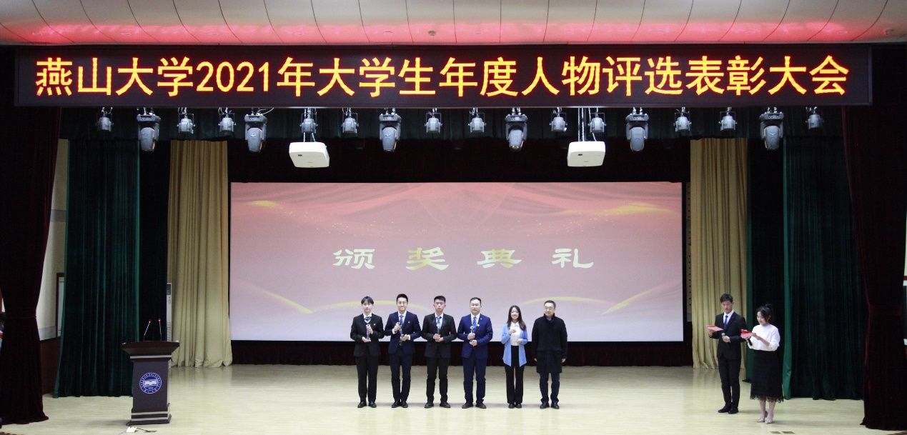[News Center] In order to discover and publicize the advanced student models of Yanshan University (YSU), give full play to the exemplary leading role of the models around us, and encourage all YSU students to study hard and be active and enterprising to become newcomers of the era who take on the responsibility of national rejuvenation through hard work, the 2021 Excellent Students Selection and Commendation Meeting of Yanshan University was held on December 15 in the lecture hall of the University Student Activity Center of the West Campus. Ma Min, Xing Youguang, Zhang Shuo, Yin Ziyue, and Zhang Shiqi (in the order of surname strokes) were awarded the title of “2021 Excellent Students of Yanshan University”; Wang Wenfeng, Chen Si, Jin Feiyu, Guo Kaiyu, and Chang Yukai (in the order of surname strokes) won the nomination award of “2021 Excellent Students of Yanshan University”. Huang Sheng, Deputy Secretary of the CPC Yanshan University Committee, attended the meeting and presented awards to the winning students.