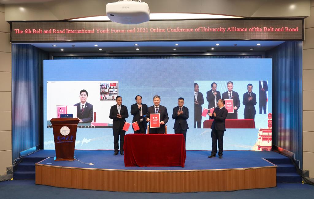 On December 10, the 6th "Belt and Road" International Youth Forum and "Belt and Road Initiative" University Alliance Forum was opened at Lanzhou University. Yanshan University (YSU) was invited to participate in this online meeting, and President Zhao Dingxuan attended the online signing ceremony.