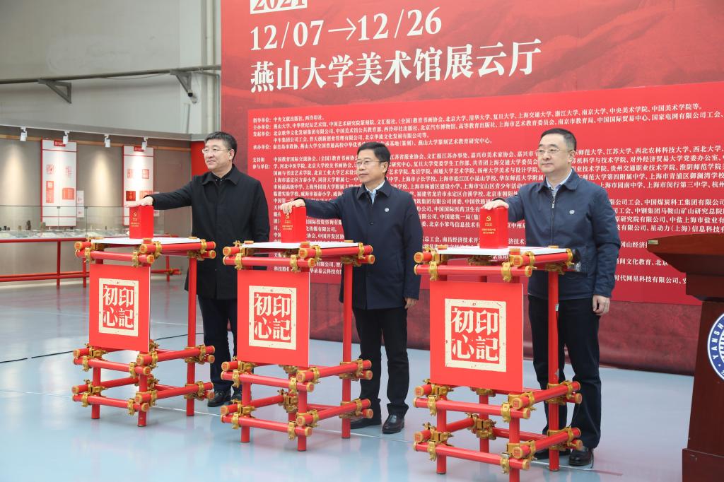 At the opening ceremony, on behalf of the elderly, middle-aged and young CPC members, Teng Guosheng, a teacher who is from the School of Arts and Design of YSU and is willing to support the youngers, Gu Qingwei, a teacher who focuses on promoting the excellent traditional Chinese culture, and Zhou Yang, a student who is elected as the Hebei Young Talent Star, passed on theme seal of “Imprint Original Mind” to inherit the original mission and spirit of struggle of the CPC members.
