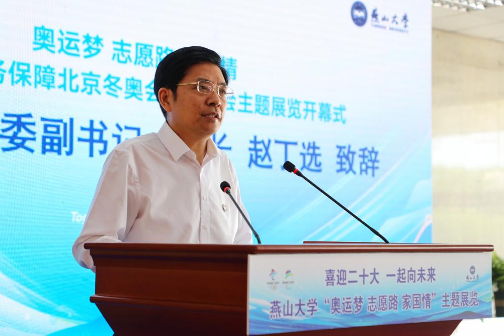 In his opening speech, Zhao Dingxuan expressed his heartfelt thanks to the relevant departments of Hebei Province and Qinhuangdao City for their long-term care, help and full support for the development of YSU’s undertakings. He pointed out that relying on the local unique geographical advantages and rich sports and cultural resources, and with its cultural gene, craftsmanship spirit, excellent quality and patriotism, YSU has never missed major national sports and cultural events, especially in the service assurance of Beijing Olympic and Paralympic Winter Games where it delivered a good report for the new era. He stated that historical archives should be kept to help govern the country and educate the people. By vividly reproducing the history of Qinhuangdao City and teachers and students of the university serving major national sports events, the exhibition is a useful practice of holding high-quality exhibitions jointly by the university and the municipal government to better meet people's needs for a better life, as well as a significant outcome of rooting patriotism and Olympic culture on campus. He hoped that with this opportunity, all YSUers would continue to vigorously carry forward the spirit of Beijing Olympic Winter Games, fulfil their cultural character, and contribute to the city's efforts in accelerating the construction of a world-class tourist city and the country’s efforts in fulfilling the Chinese dream of great national rejuvenation.