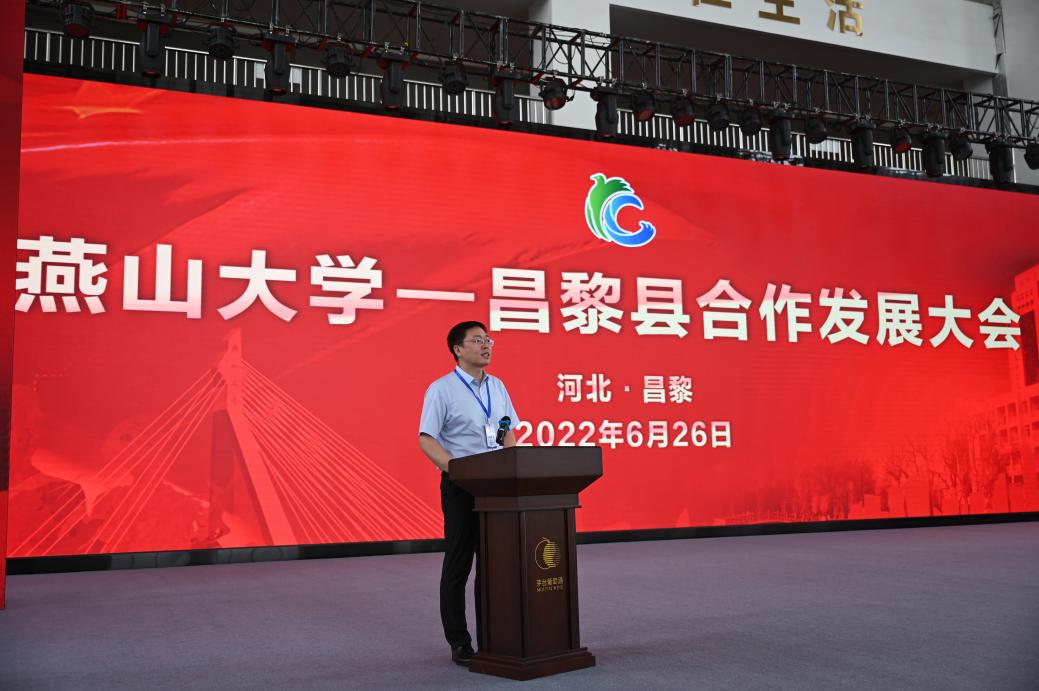 Zhao Dingxuan delivered a speech at the Development Conference. On behalf of YSU, he expressed warm congratulations on the successful opening of the conference. He said that he hopes this conference could fully exploit human resources, realize “intelligence” sharing, and contribute more wisdom to the economic and social development of Changli County. He said that YSU and Changli County will jointly set up YSU Alumni Industrial Park, and alumni enterprises settled in the industrial park can enjoy all-round services of YSU and the exclusive preferential policies of the County. The three parties will constantly explore new modes of cooperation to achieve mutual benefits and common development among the alumni enterprises, YSU and Changli County.