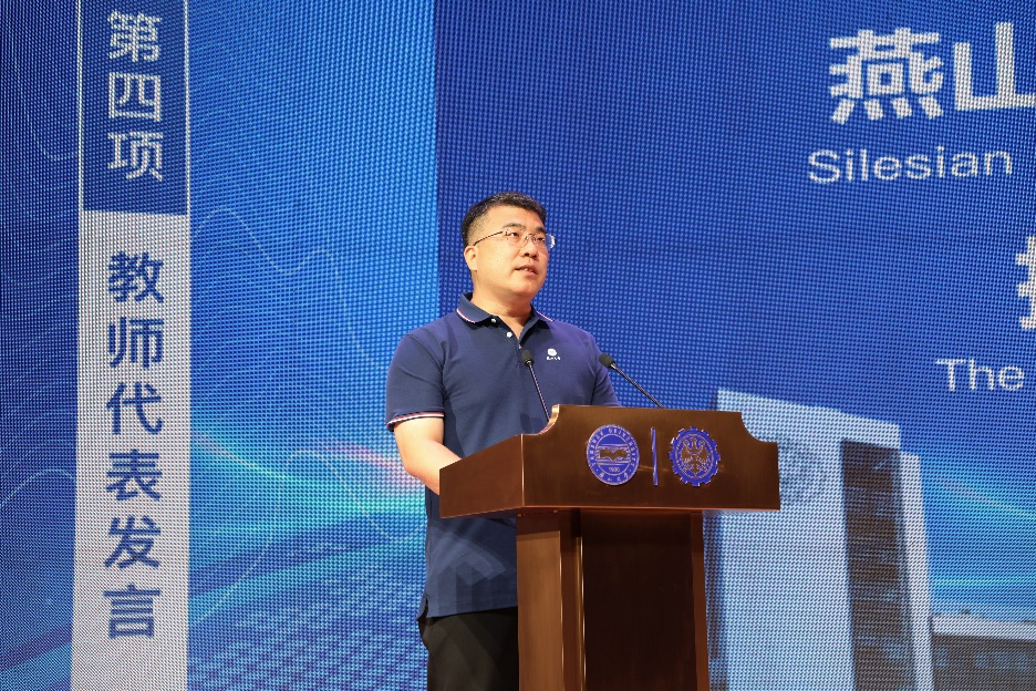 Liu Xueqiang, a teacher representative from the specialty of Electronic Science and Technology, said in his speech that as a professional teacher, he will insist on treating teaching with initial heart, enthusiasm and perseverance, and be student-oriented and concentrate on studying; adhere to the OBE concept as a guide, and constantly improve students' ability to analyze and solve problems. He expressed the hope that the freshmen would learn something, achieve something in the Silesian College of Intelligent Science and Engineering, and live up to their youth and times.