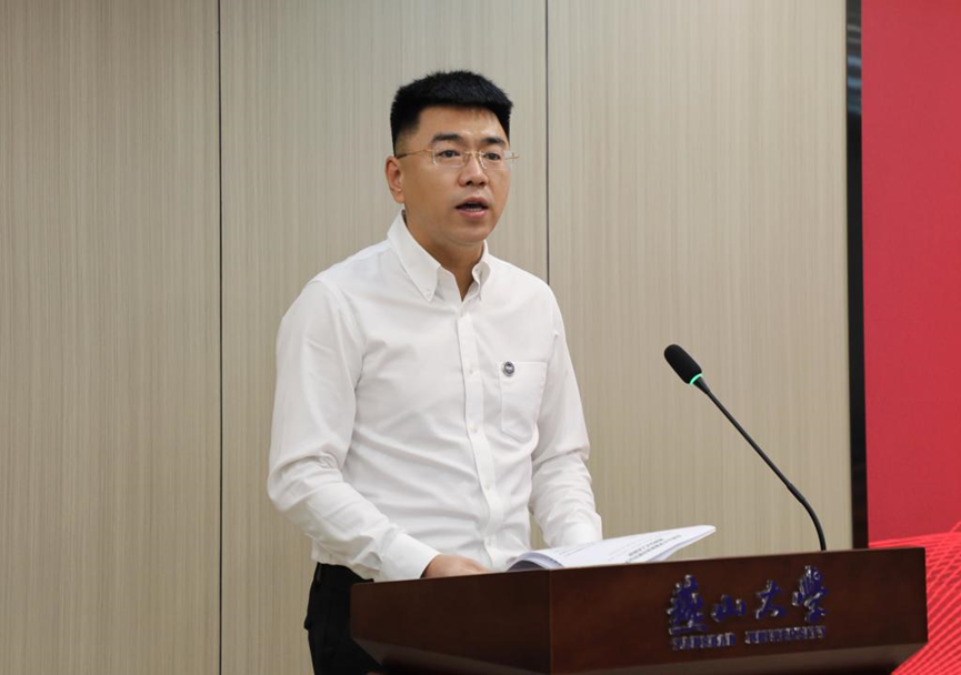 Zhang Shiqi, the gold medal winner of the 7th China International "Internet +" College Students’ Innovation and Entrepreneurship Competition and a 2022 doctoral student of the School of Electrical Engineering, spoke as a student representative. He shared the journey of starting a business by participating in the "Internet+" competition. He said that the university will provide a broader stage for YSUers to display their ambitions by building a national innovation and entrepreneurship academy, and more and more YSUers will pursue and achieve their dreams through innovation and entrepreneurship. He said that young students should integrate their passionate youth dreams into the great Chinese dream, strive to become promising talents with both ability and political integrity, repay the university with practical actions, and contribute to building a modern socialist country.