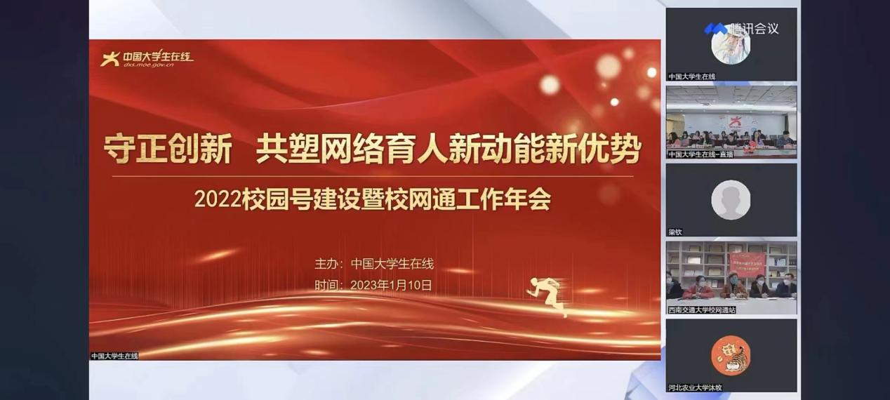 On January 10, Seminar on Campus Account Construction and Annual Meeting of Campus Network Communication Station 2022 "Uphold Fairness and Bring Forth New Ideas to Shape the New Driving Forces and Advantages of Education through Network", sponsored by dxs.moe.gov.cn, Ministry of Education, was held online, with more than 1,000 representatives of teachers and students from more than 300 colleges and universities across China attending the meeting.
