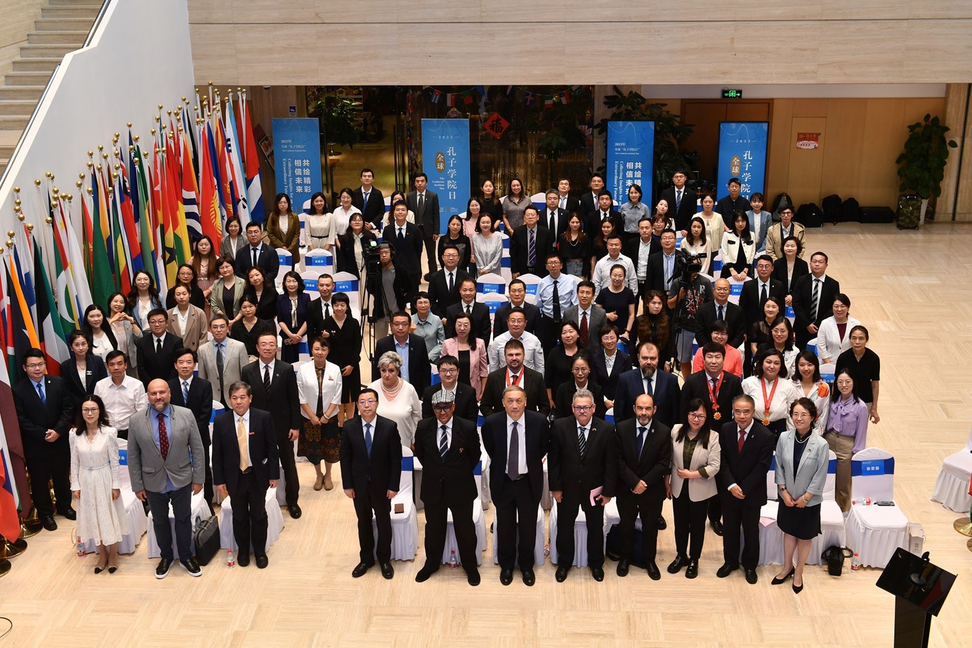 Thismarksthe tenth Confucius Institute Day, with the theme "Collecting Insights for an Extraordinary Future".Twenty-sixChinese and foreigndirectors of Confucius Institutes from 18 countries, including the United States, Canada, Germany, South Korea, Kyrgyzstan,andEcuador, were awarded the 2023 Confucius Institute Director Commemorative Medal. In the event, the plaques were presented to the five newly established Confucius Institutes in 2023. The list of winners for the 2023 CI Moments Global Short Video Collection Eventwas also announced at the event. As the Confucius Institute brand is about to celebrate its twentieth anniversary, 320 directorrepresentatives of Confucius Institutes worldwide have jointly issued a proposal. The proposal suggests that Confucius Institutes around the world should celebrate the 2024 global "Confucius Institute Day" under the theme of "At20th,the Confucius Institutes Isin Its Prime", marking this significant milestone.