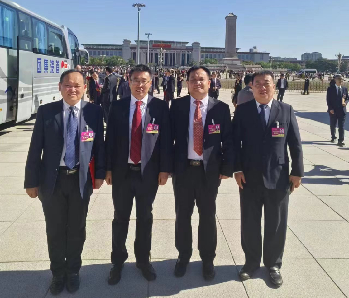 Group photo of Wang Limin (the second from the left) and Zhang Jianhua (the second from the right), the Deputy Head ofUnited Front Work Department ofHebei Province, and other representatives outside the Great Hall of the People
