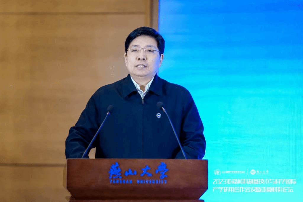 On October 27-29, the “2023 International Conference on the Cooperation and Integration of Industry, Education, Research and Application of Metastable Material Science and Technology & Metastable Material Forum”, sponsored by the National Center for Schooling Development Programme, Hebei Education Department, and jointly organized by School of Materials Science and Engineering and State Key Laboratory of Metastable Materials Science and Technology, was held in Qinhuangdao. The meeting focused on metastable materials, a hot research field in international material science, and invited famous experts at home and abroad to make plenary talks, communicate and discuss projects related to metastable material science research. President Zhao Dingxuan and Vice President Wang Limin of Yanshan University attended the conference. Major principals of School of Mechanical Engineering, School of Information Science and Engineering, School of Environmental and Chemical Engineering, and School of Civil Engineering and Mechanics participated in the meeting.