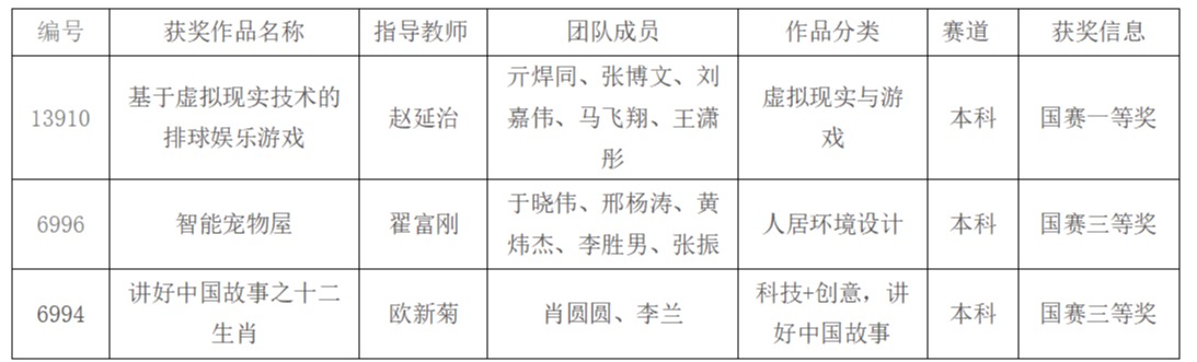 The work "Volleyball Entertainment Game Based on Virtual Reality Technology", guided by Professor Zhao Yanzhi and developed by students Qi Hantong, Zhang Bowen, Liu Jiawei etc., stood out in the competition, winning the first prize of the national competition and the Award of Excellent Guiding Teacher.