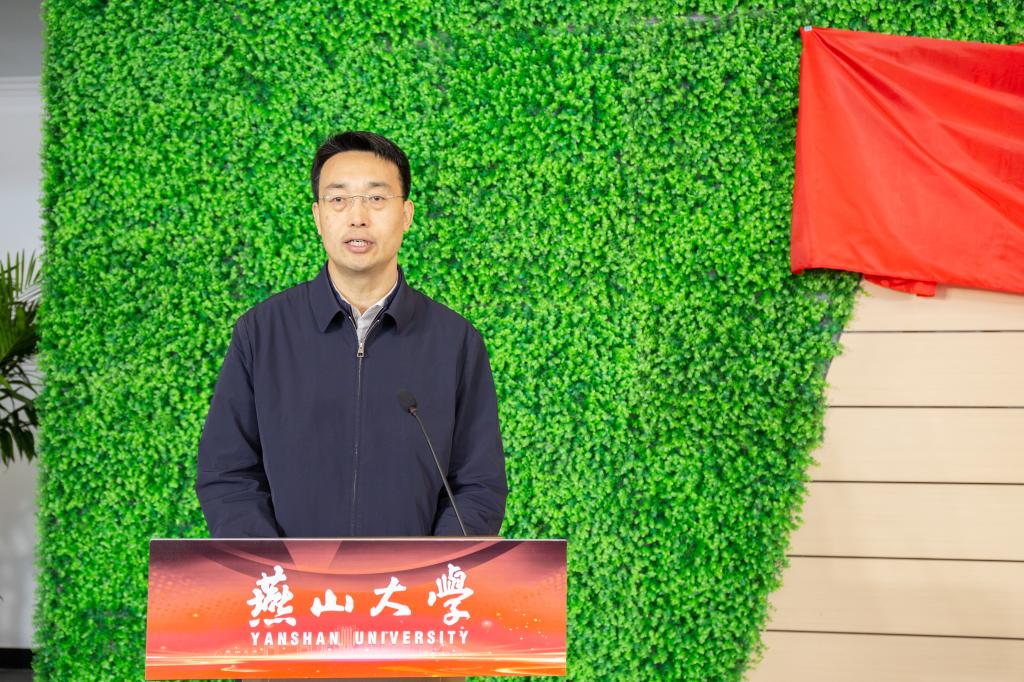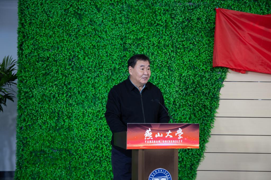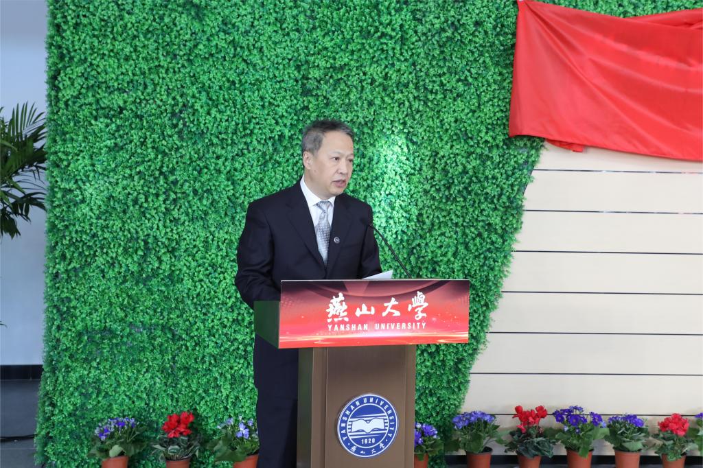 Li Guoqiang, Vice Mayor of Qinhuangdao City, Ren Jiadong, Wang Desong, Huang Chuanzhen, Wang Limin and Cai Xingzhou, leaders of YSU, Xiao Fengli, Director of Qinhuangdao Education Bureau, and the heads of relevant schools and departments of YSU attended the unveiling ceremony. The ceremony was presided over by Wang Desong. Ren Jiadong said in his speech that the establishment of the Institute of Life Health and Intelligent Medicine is an important measure to implement the national medical and health care strategy and cultivate the compound talents, and has injected a new power source to promote the construction of "Double First-class" initiative and enhance the overall strength of YSU. The establishment of the Institute of Life Health and Intelligent Medicine provides the talents and scientific and educational support for promoting the training of health care talents, driving the technology research of health care industry to help local governments better undertake Beijing-Tianjin medical resources and serve the coordinated development strategy of Beijing-Tianjin-Hebei Region, and assisting the construction of a healthy China, and also demonstrates the responsibility and commitment of YSU to serve the national strategy and local economic and social development, and further promotes the new development of the innovative cross-integration of the medicine and engineering in YSU. Ren Jiadong also introduced the major achievements made by YSU in recent years to the on-site leaders and guests.