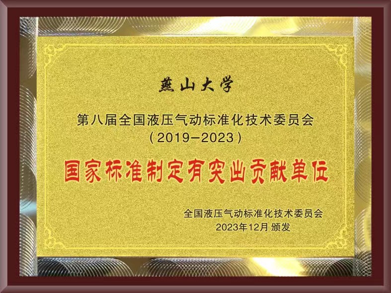 The honor marks an affirmation of YSU’s achievements in the standardization work of fluid power, and also reflects the significant contribution of the university in boosting fluid power technology. In the future, Yanshan University will continue to devote to standardization work in related fields, keep close ties with domestic and foreign enterprises and universities, and make contributions to China's technological progress and standardization.