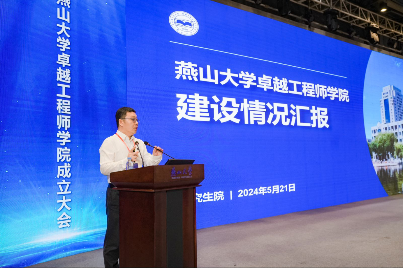 Zhao Dingxuan delivered a welcome speech on behalf of YSU to express his gratitude to the authorities, companies, institutions and universities who have been always supporting the development of YSU. He emphasized that, in constructing the School of Outstanding Engineers, YSU will focus on four aspects: 1. It will adhere to the shared mission, focus on the top priorities of the country, and comprehensively improve the quality of talent cultivation. 2. It will adhere to key breakthroughs and accelerate the cultivation of high-level innovative talents urgently needed by the country to meet major national strategic needs. 3. It will adhere to platform co-construction and teacher sharing, deepen the integration of industry and education, and promote the new model of cultivating outstanding engineers through university-business cooperation. 4. It will adhere to the pursuit of excellence, develop an excellent engineer training system with YSU characteristics, and strive to construct a “model school” for outstanding engineer cultivation for universities at the local level.
