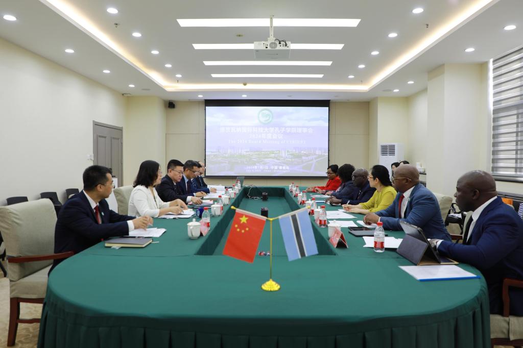On the morning of July 5, the 2024 Annual Advisory Board Meeting of the Confucius Institute at BIUST was held in Room 2102 of the Century Building. Chen Guoqiang extended a warm welcome and sincere greetings to the Botswana members of the Advisory Board on behalf of the Chinese members, and expressed hopes that the two sides will deepen mutual understanding and trust, jointly explore new ideas and initiatives for the future development of the Confucius Institute, and promote the education and cultural exchanges and cooperation between China and Botswana to a new level.