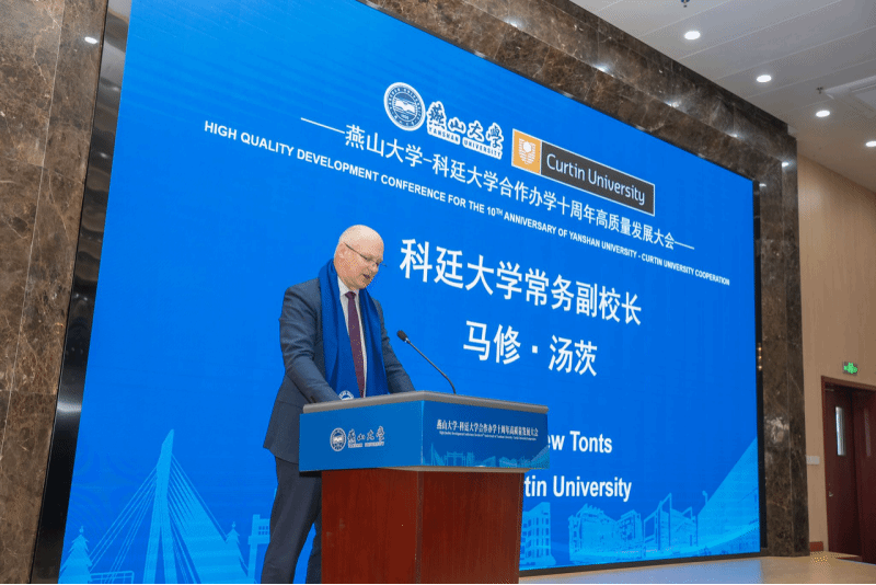 From November 5 to 6, the High Quality Development Conference for the 10th Anniversary of Yanshan University-Curtin University Cooperation was grandly held at YSU. Under the theme of "A Cornerstone Settled by a Decade's Endeavor and a New Chapter Opened by Joint Efforts", this conference focused on four key topics—"Forging Ahead for a Shared Future", "A Decade of Hard Work Contributing to a New Chapter", "Cultural Fusion and Lasting Friendship", and "Exploring the Unknown at Academic Frontiers". The Conference aimed to comprehensively summarize the remarkable achievements of YSU and Curtin University (CU) over the past decade of cooperation in education, faculty development, and the training of international talents. It was also designed as a platform for YSU and CU to together look forward to a new chapter of cooperation that promotes their high-quality development and paves the way for a brighter future. The Conference was hosted by YSU, undertaken by the School of International Education (YSU European Institute), the School of Economics and Management, and the School of Electrical Engineering, and co-hosted by the Office of International Cooperation, the School of Arts and Design, the School of Information Science and Engineering (School of Software) and the School of Science.