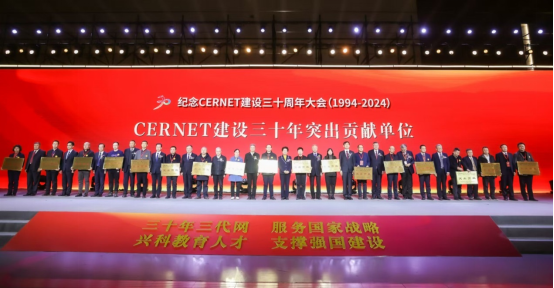 On December 24, a conference celebrating the 30th anniversary of the establishment of the China Education and Research Network (CERNET) officially commenced at the China National Convention Center in Beijing. The conference was to review the glorious history of CERNET over the past three decades, recognize organizations and individuals who have made significant contributions to its success, and lay out a new vision for its future development. Chen Zhili, former State Councilor and Vice-Chairman of the Standing Committee of the 11th National People’s Congress (NPC), and Wu Yan, Member of the CPC Leadership Group of the Ministry of Education (MOE) and Vice Minister of the Ministry of Education, attended the conference and gave remarks. The event also saw the presence of leaders and representatives from various institutions, including the MOE, the Office of the Central Cyberspace Affairs Commission, the National Development and Reform Commission, the Ministry of Science and Technology, the Ministry of Industry and Information Technology, the Ministry of Public Security, the National Natural Science Foundation of China, the Chinese Academy of Engineering, colleges and universities that host significant nodes of CERNET and members of CERNET. Yanshan University (YSU) was honored for its remarkable contributions to CERNET in celebration of CERNET’s 30th anniversary.