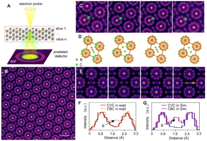 Figure 1: Precise characterization of atomic structure and boron vacancies in B4C crystals via 4D-STEM imaging