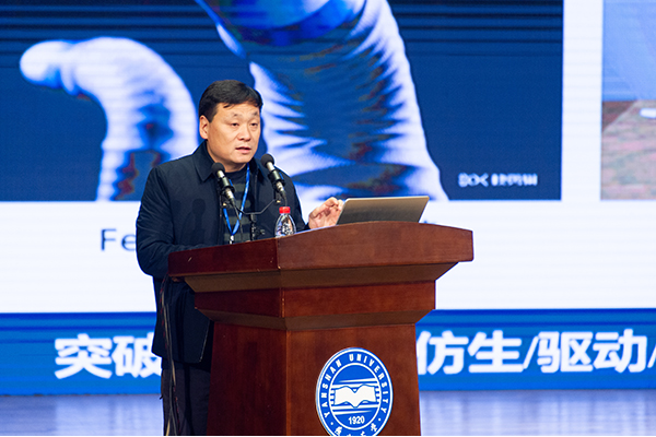 Peng Yan, the Dean of the School of Mechanical Engineering, speaks at the forum.
