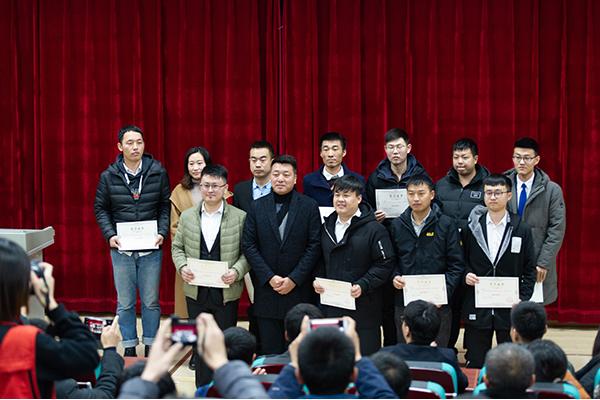 Dong Guojiang, Secretary of the Party Committee of YSU School of Mechanical Engineering, presents awards to the winners.