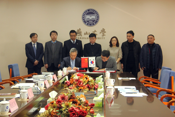 After the meeting, Chen Guoqiang hosted a discussion with the delegation of Woosuk University. Both sides exchanged opinions on the exchange project between the two universities and reached a consensus. Subsequently, Guo Jinping and Jin Dongzhu signed an agreement of student exchange program, which will start in 2020.