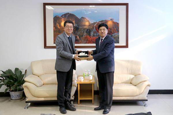Jin Dongzhu thanked Zhao Dingxuan and Chen Guoqiang for their cordial meeting. He briefly introduced the current status of Woosuk University, and congratulated our school for its great achievements in teaching and scientific research. He hoped that the exchanges and cooperation between the two universities would develop smoothly, and more cooperation could be initiated in other fields.