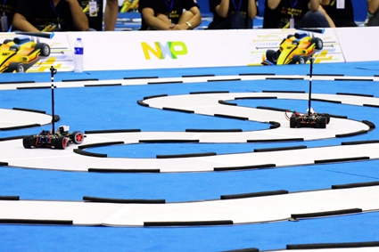 (News fromNews center)July 19- 21,the 11thCollege Student “NXP Cup” Smart Car Race in North China Division, hosted by Ministry of Education Higher Education Teaching Guidance Committee of Automation Discipline and organized by YSU and NXP Semiconductors, was held in YSU Gymnasium. 1500 students and their advisors presented in 360 teams from 78 universities and colleges in 6 provinces in North China, including Beijing University of Aeronautics and Astronautics, Beijing institute of technology, Tianjin University, YSU, Taiyuan University of Science and Technology, participated in the race.