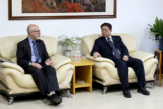 YSU Vice President Dingxuan Zhao, with leaders from International Cooperation Division, School of Electrical Engineering and School of Economics and Management, held a conference with the delegation in the first reception room, Century Building. Mr. Zhao welcomed the delegation, introduced YSU and Curtin-YSU cooperative education projects and expressed his wishes to further strengthen the cooperation with Curtin University. Mr. Seth Kunin introduced Curtin University, expressed his wishes to enhance student and teacher exchange and to promote scientific research on the basis of the existing cooperative projects. Both sides will make joint efforts to promote cooperative projects, strengthen educational exchanges, and focus on the potential establishment of cooperative educational institutions. (Editor: Qiaoyi Cai)