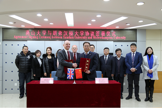 President Hongmin Liu and President Geoff Layer signed a memorandum of cooperation on behalf of the two universities, which means both sides will carry out substantive cooperation in scientific research, joint-education, faculty communication, communications in terms of publications, arts and science, and academic conferences. After that, the guests visited School of Arts and Design. According to the plan of faculty communication, some YSU teacher are visiting University of Wolverhampton as exchange scholars in the spring semester.