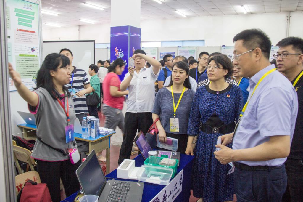 On the morning of May 20th, the exhibition of the entries was held at the gymnasium of Hebei University of Science and Technology. Huaying Song, Secretary of Hebei Communist Youth League; Tingshan Wang, Deputy Director of Hebei Education Department; and other leaders watched the exhibition and exchanged views with students in the contest.
