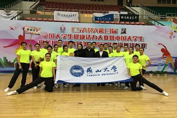 Led by Meng Zhao, the Assistant Dean of School of Physical Education, and coached by Xiaohui Li and Jing Gao, YSU Aerobics Team consists of 16 undergraduates and 3 postgraduate students from the School of Physical Education, and they ranked the first in Campus Aerobics Championship with excellent performance of “Double Beat” and “Disciple Gauge” - rhythmic body language routine, and “Prairie Eagle” - national dance required routine. During the competition, YSU Aerobic Team received unanimous praise from the leaders, judges and conductors of other teams and won the Most Youthful and Energetic Award, which showed good images and temperament of YSU students to the national colleges and universities. They will strive for good results and win honor for YSU in following national competitions of aerobic gymnastics.