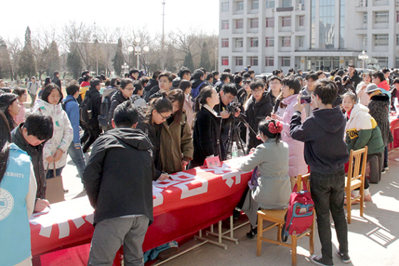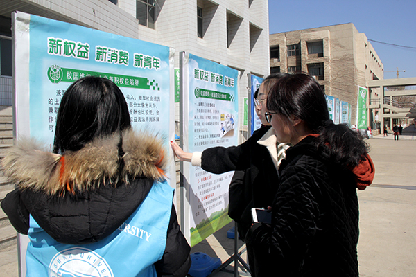 At theactivitysite,three aspects of the activity, the origination of3·15 World Consumer Rights Day,self-protection channels foruniversity students’in- and outside of campus,and YSU3·15activities, were displayed on 16 boards.Teacher Yan Jingyi from YSUOfficeof Legislative Affairsandlawyer Liao Jing fromHebei Hongye Law Firm, facing the problem of students’lack of consumers’self-protection awareness, friendly answered the questions about rights and interests that students had in daily life. Theactivityattracteda large number ofstudents listening and interacting with the teachers and lawyers. Astudentsaid that such a form of publicity coulddirectlyaddress the concerns in their real life and helped students develop their awareness in their consumption behaviors in the future. In thesignature session,YSU’s studentssolemnlysigned their names on the15-meter long scroll, and promised to safeguard their own rights and interests.