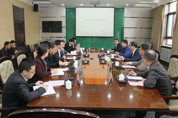 [News from the News Center] On March 30, YSU President Liu Hongmin, and YSU Vice President Kong Xiangdong, , led a delegation consisting of the leaders from the Department of Science and Technology,National Engineering Research Center forEquipment and Technology of Cold Strip Rollingand YSU President Office to pay a visit anddo research and investigation atTaiyuan University of Technology(TYUT) andTaiyuan University of Science and Technology(TYUST). YSU delegation had a meeting with Wu Yucheng,TYUTParty Secretary, Huang Qingxue,TYUTPresident, and Zuo Liang,TYUSTPresident, and exchanged ideas on comprehensivereform, curriculum development,scientific and technological innovationamong others.