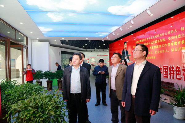 The delegation is visiting theexhibitionofthe ideological and political work.