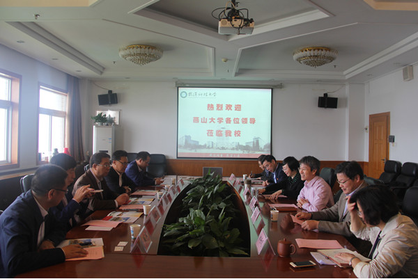 [News from the News center] In order to further promote the scientific research management and collaborative innovation, April 25-27, YSU’s President Liu Hongmin and Vice President Kong Xiangdong led a delegation of some people from YSU’s Institute of Science and Technology, the National Cold Rolling Strip Engineering Center, the President’s office and other relevant unit leaders to Wuhan University of Science and Technology (WUST) and Nanjing Institute of Technology (NIT) to conduct research investigations